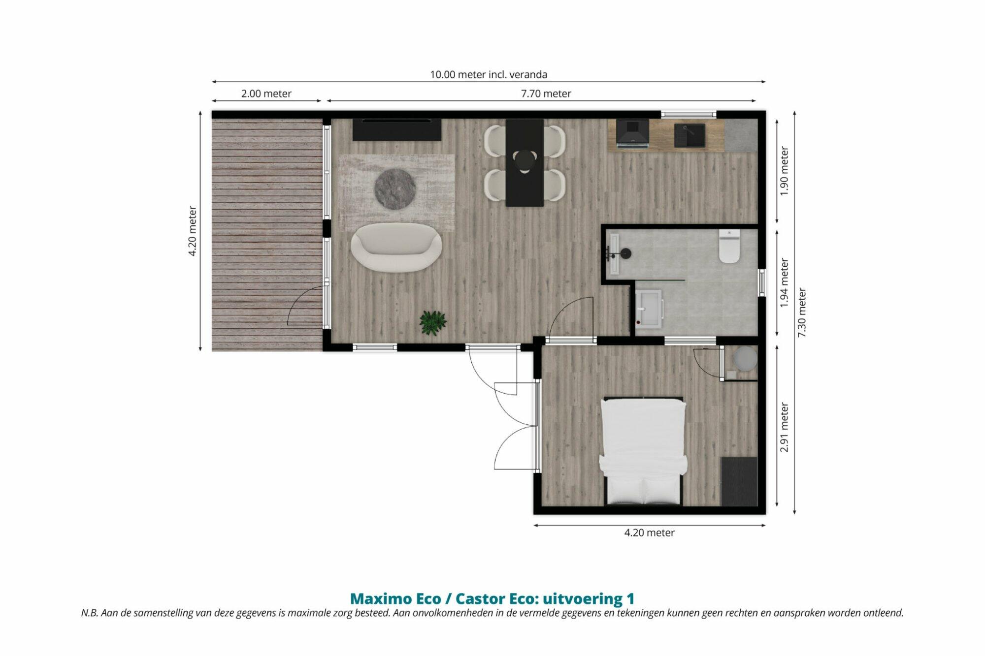 Afmetingen (lxb): 10.00 x 4.20 + 4.20 x 3.10 meter incl. veranda