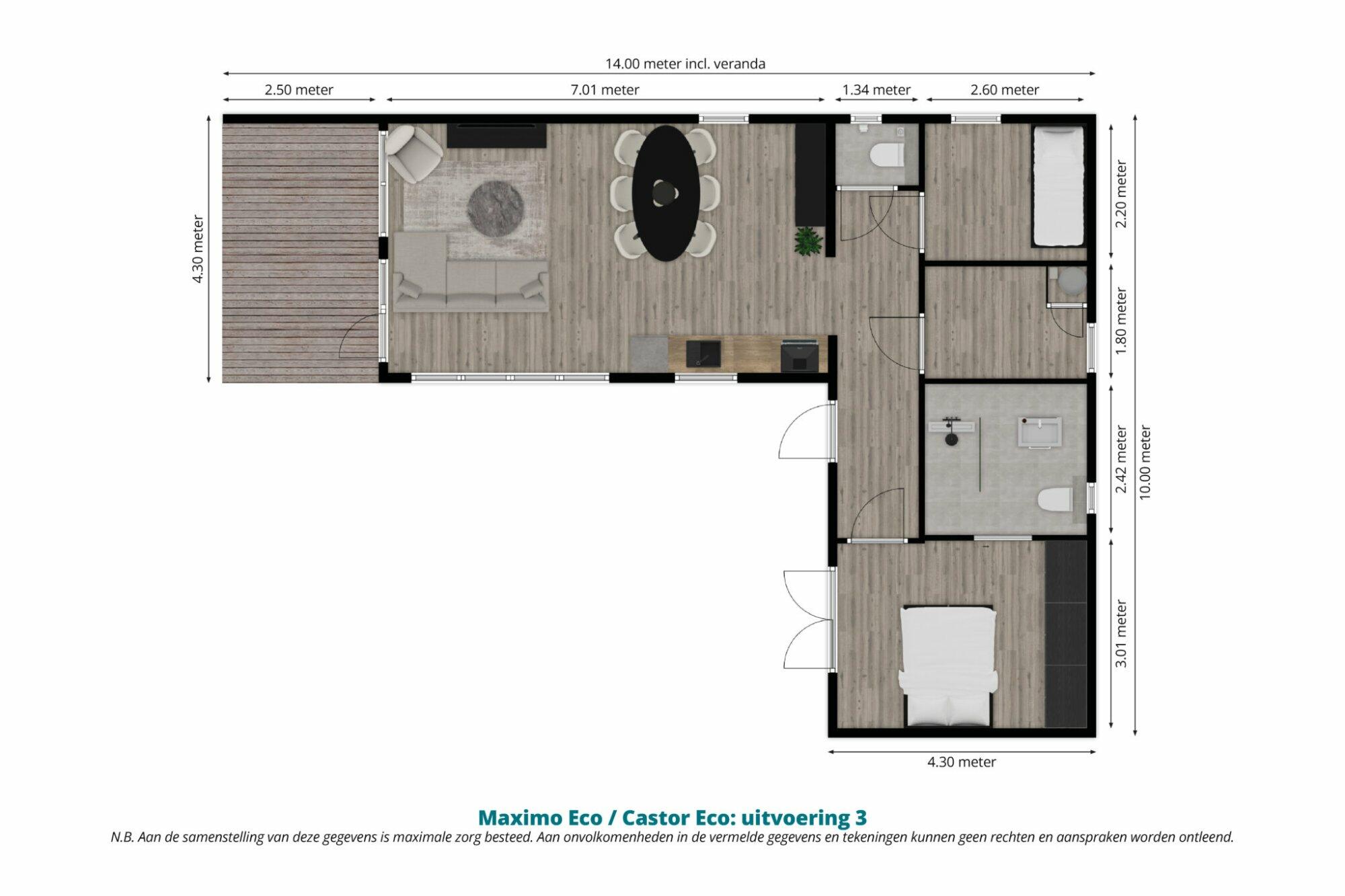Afmetingen (lxb): 14.00 x 4.30 + 4.30 x 5.70 meter incl. veranda