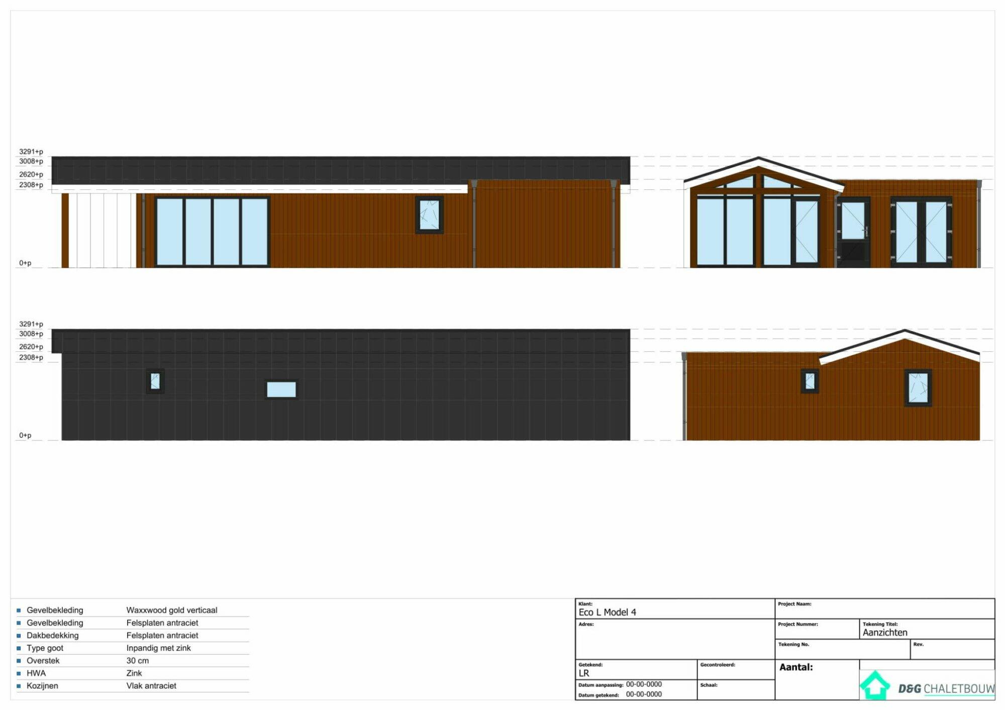 - Ruim L-vormig chalet in natuurlijke kleuren voorzien van zadeldak. Vanuit woonkamer toegang tot de veranda (aan 1 zijde dicht).