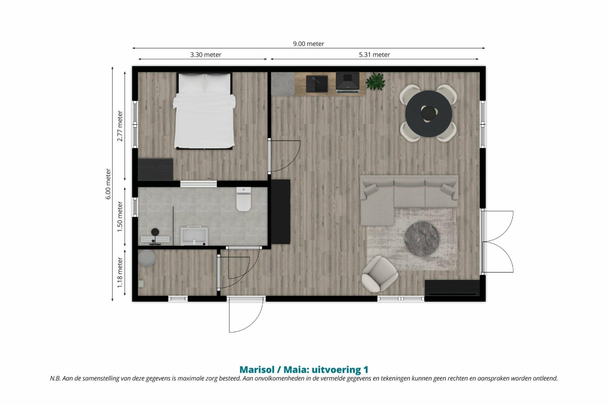 Afmetingen (lxb): 9.00 x 6.00 meter