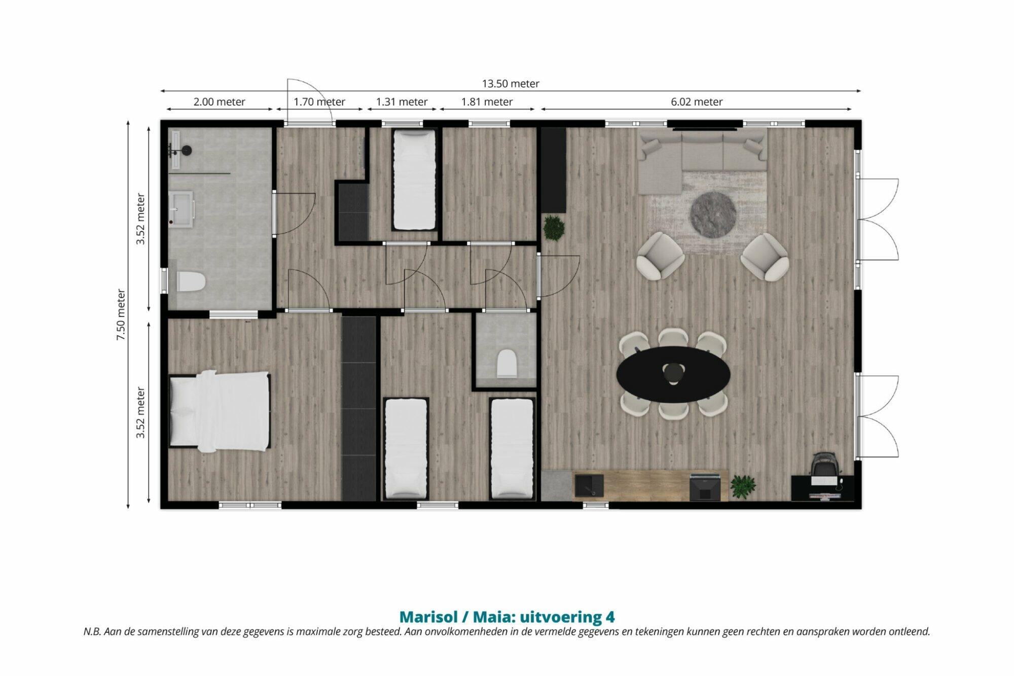 Afmetingen (lxb): 13.50 x 7.50 meter