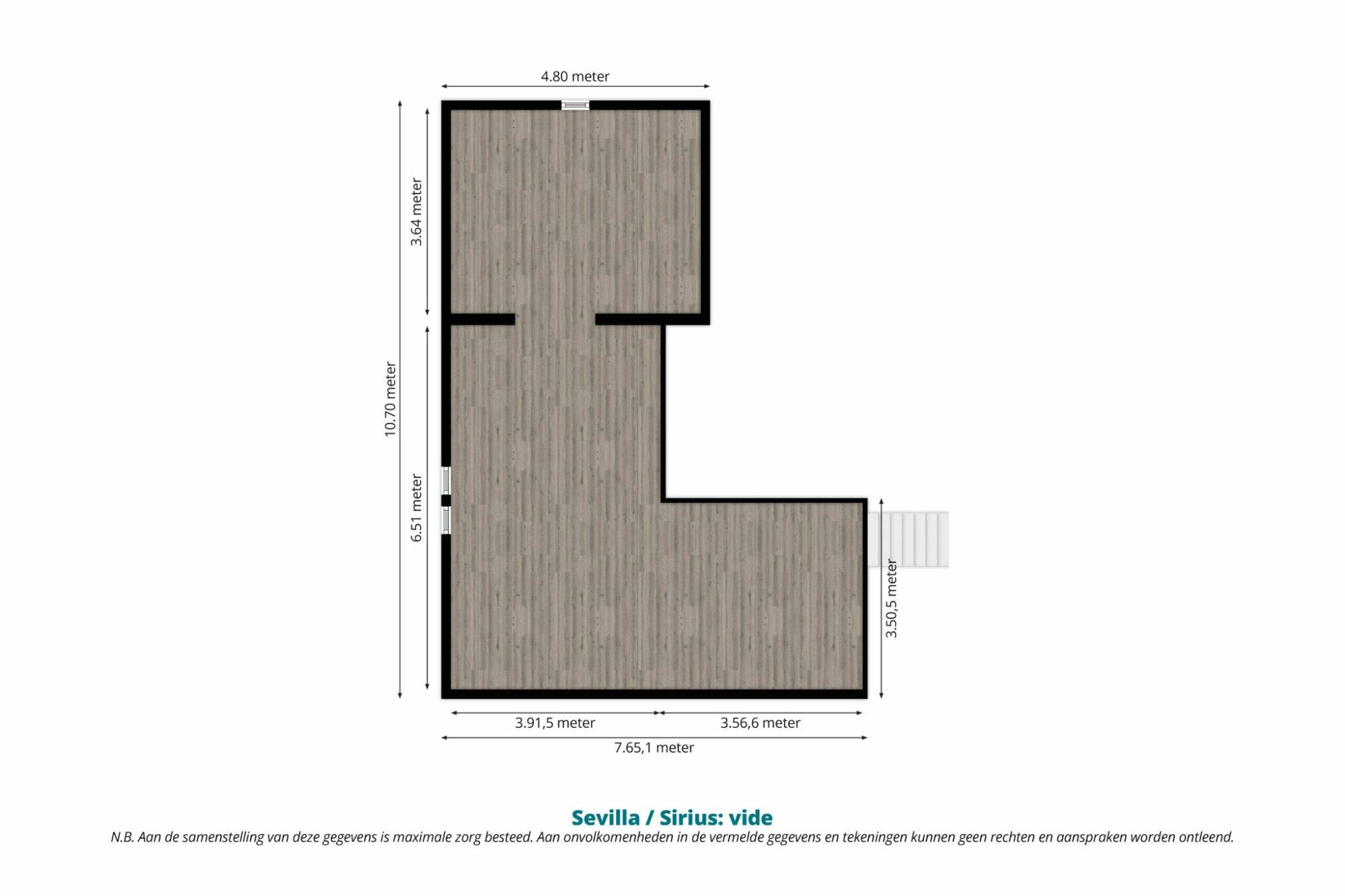 Vide: 7.65 x 3.51 + 4.80 x 7.03 meter. Oppervlakte ca. 61 m²
